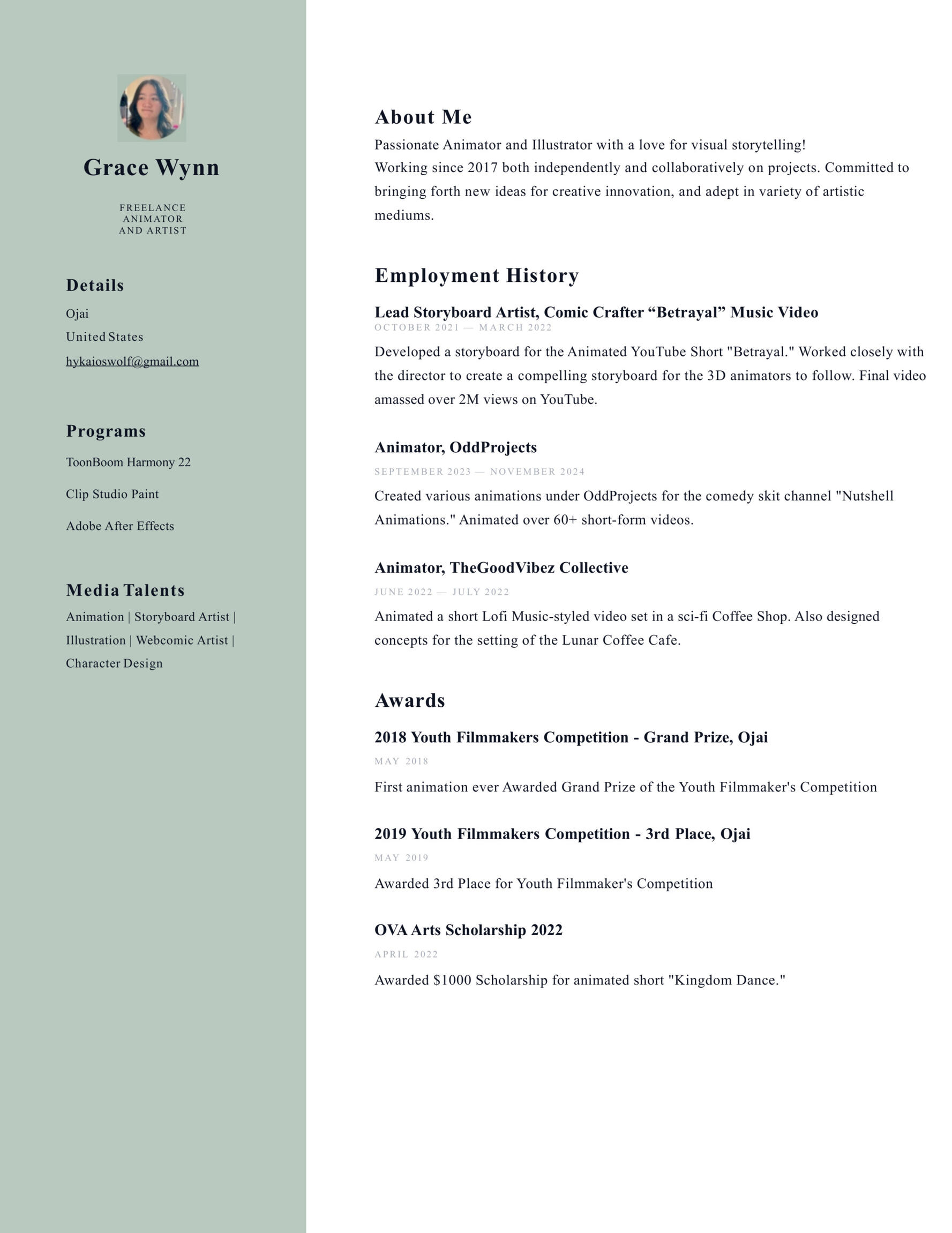 Hi! I'm Grace, and I'm an Animator and Artist based in Southern California! I've been animating since 2017 and have experience in ToonBoom Harmony,